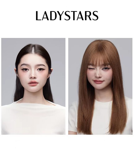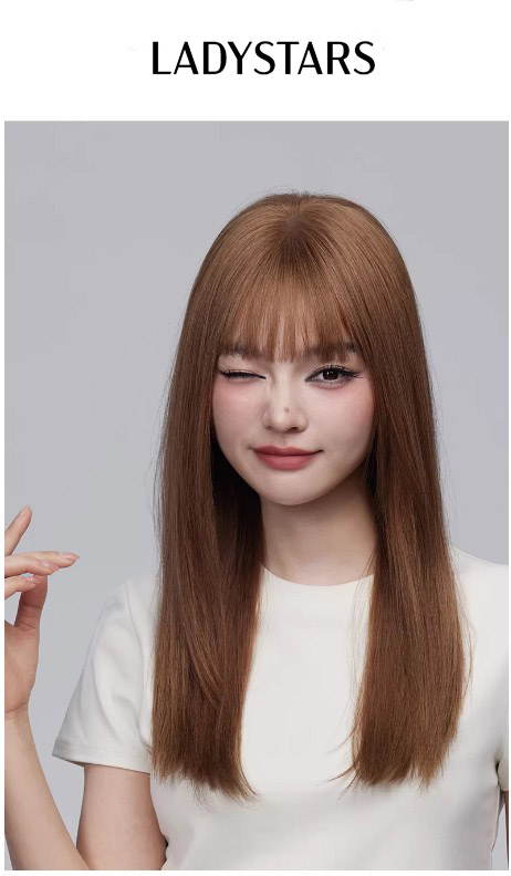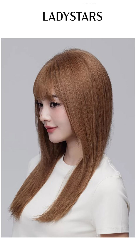 Tóc gải nữ LADYSTARS dài tỉa layer màu nâu tây có mái bằng tóc thật siêu da