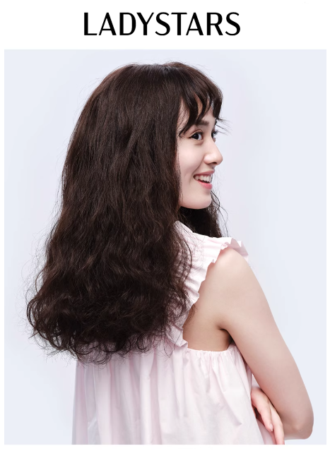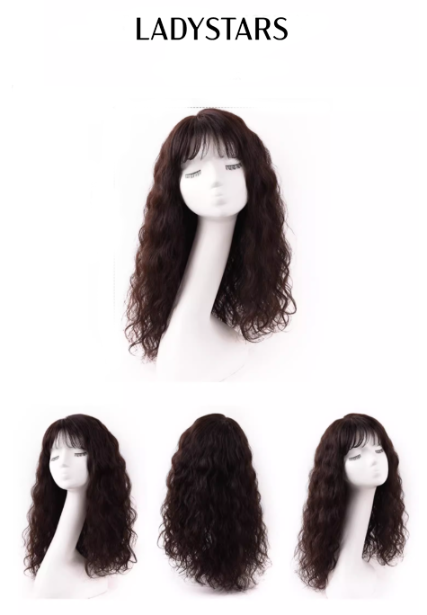 Tóc giả LADYSTARS – Tóc giả nữ dài ngang lưng xoăn nhẹ có mái bằng tóc thật