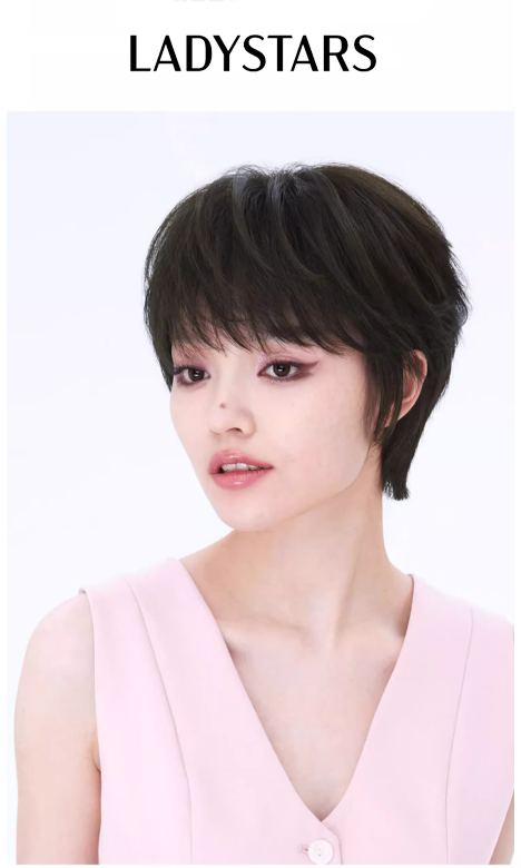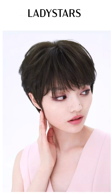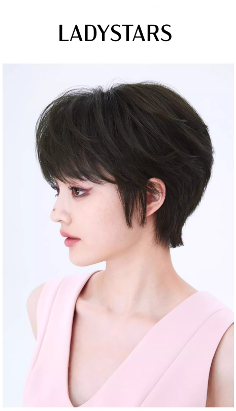 Tóc giả LADYSTARS - Tóc giả tém ngắn, mái xéo, xoăn bồng bềnh bằng tóc thật