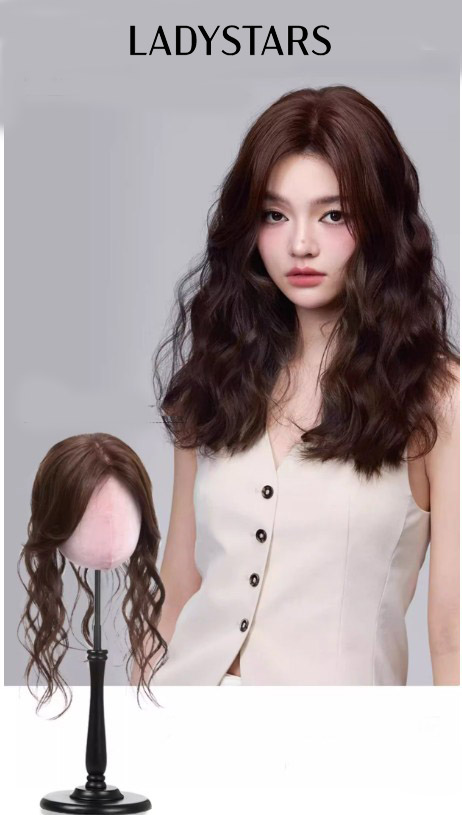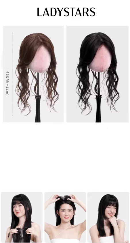 Tóc giả mái phủ hói LADYSTARS size 13×14 bản rộng cả đầu dài xoăn bằng tóc thật siêu da đầu