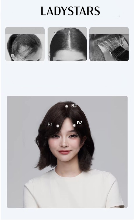 Tóc giả mái phủ hói nữ LADYSTARS hai mái siêu da đầu