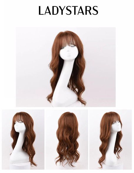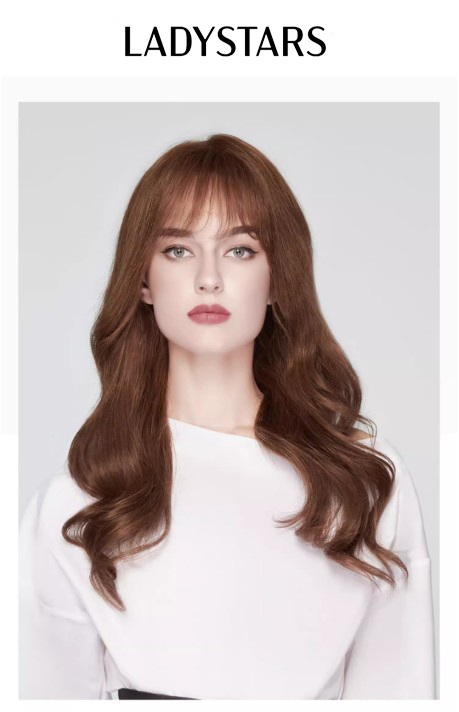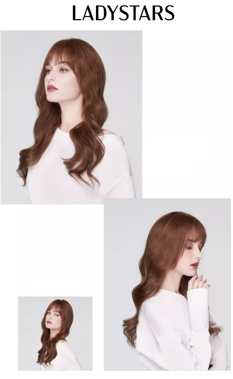 Tóc giả nữ LADYSTARS dài xoăn gợn sóng bồng bềnh, màu nâu thời trang bằng tóc thật