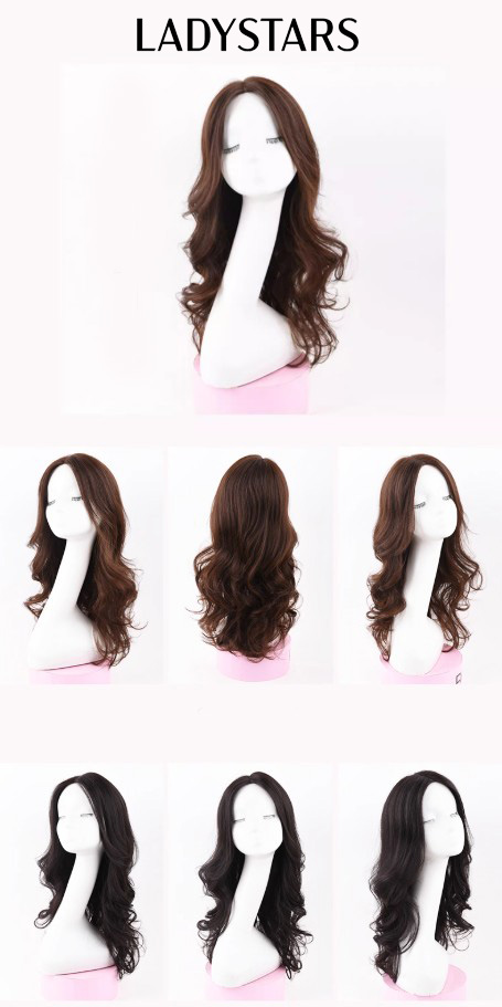 Tóc giả nữ LADYSTARS dài xoăn lơi màu hạt dẻ bằng tóc thật siêu da đầu