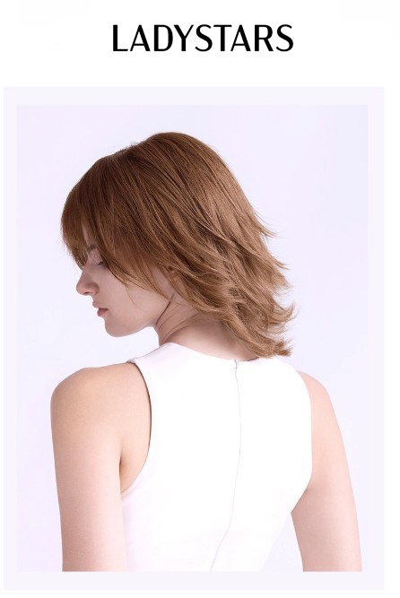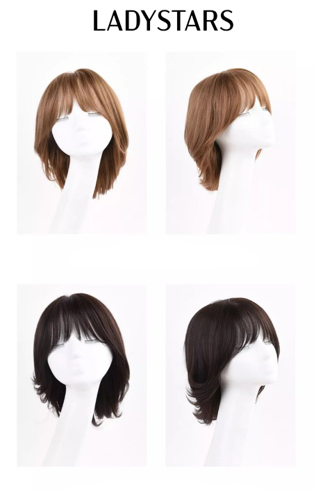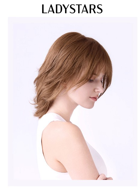 Tóc giả nữ LADYSTARS nâu tây trẻ trung có mái bằng tóc thật