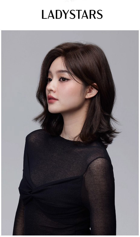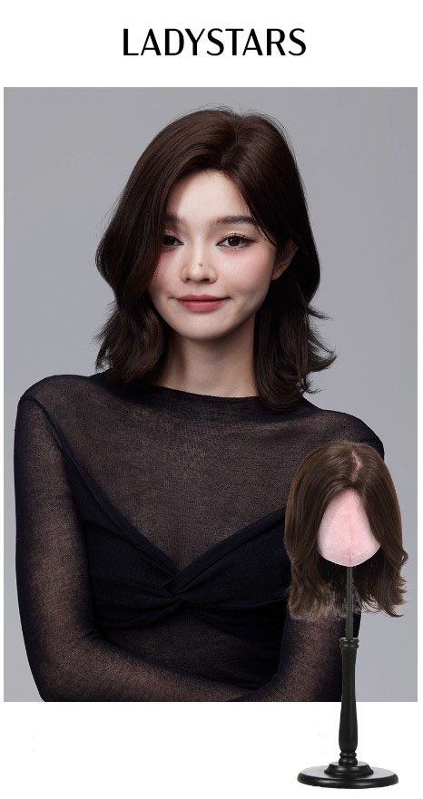 Tóc giả nữ LADYSTARS ngôi lệch xoăn ngang vai bằng tóc thật có da đầu