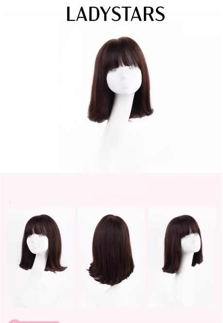 Tóc giả nữ LADYSTARS tóc mái bồng bềnh xoăn nhẹ kiểu Hàn quốc làm từ tóc thật