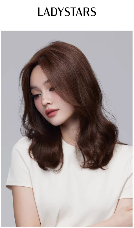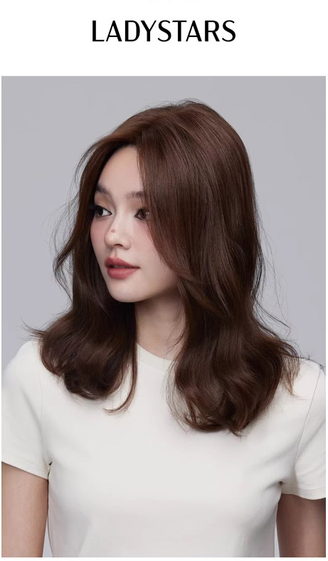 Tóc giả nữ LADYSTARS uốn đuôi cá kiểu Pháp, bồng bềnh trẻ trung bằng tóc thật có da đầu