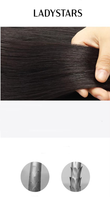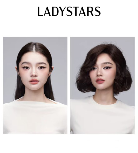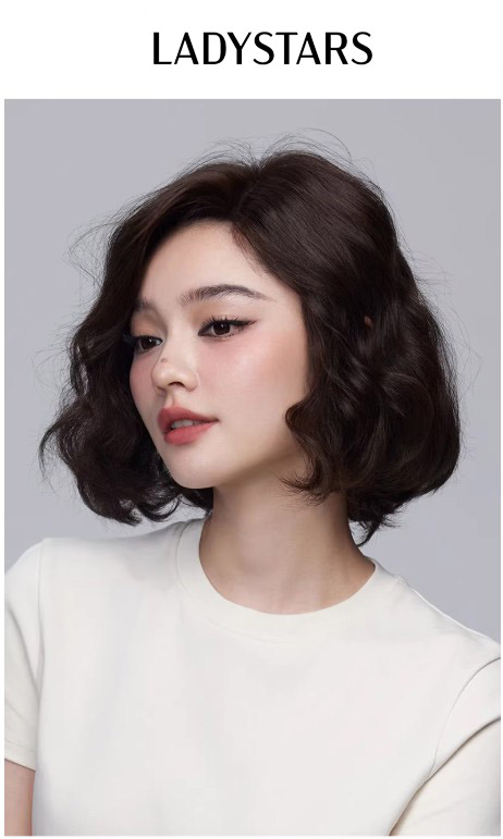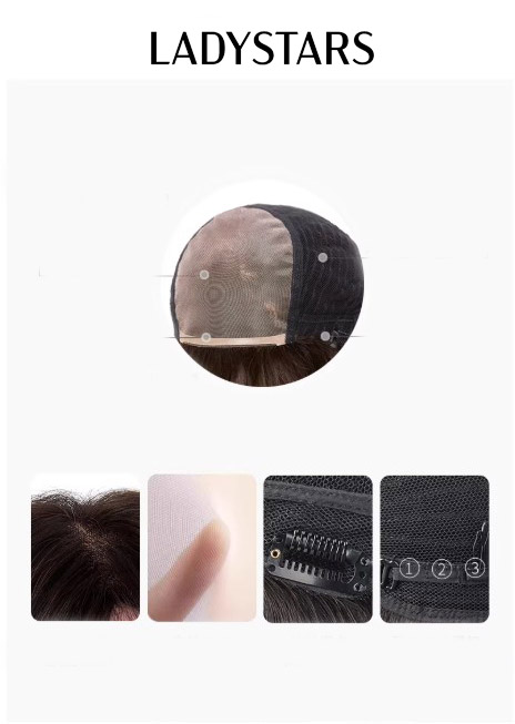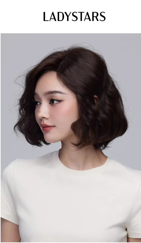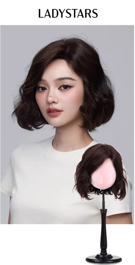 Tóc giả nữ LADYSTARS xoăn ngang vai rẽ ngôi lệch bằng tóc thật có da đầu