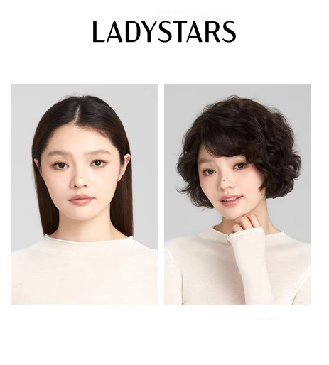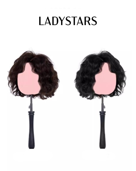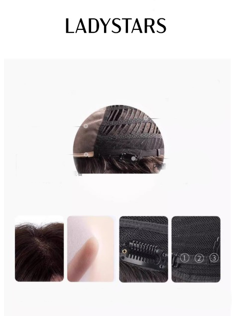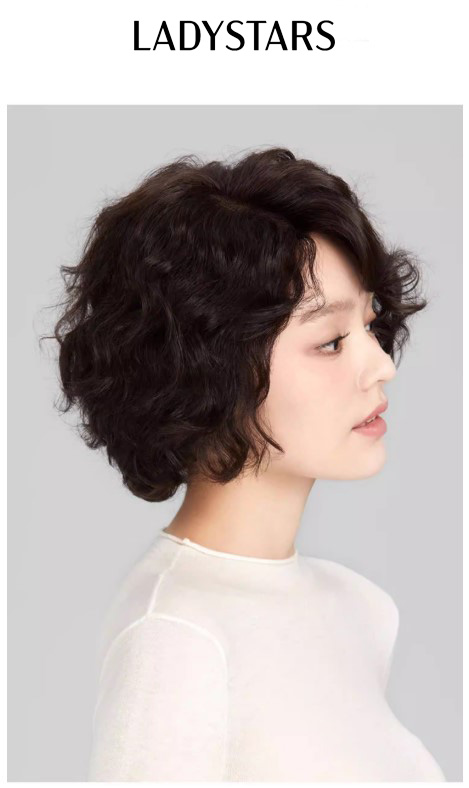 Tóc giả nữ ngắn LADYSTARS nguyên đầu kiểu xoăn lọn buông xõa rẽ ngôi lệch bên