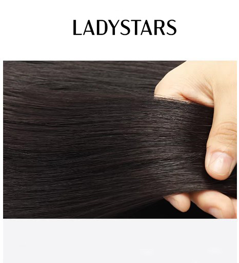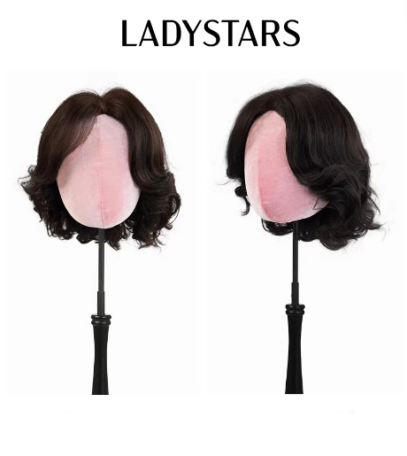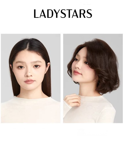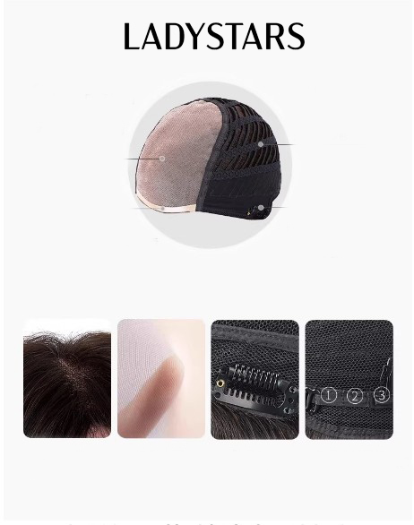 Tóc giả nữ nguyên đầu LADYSTARS ngắn xoăn ngôi lệch bằng tóc thật có da đầu