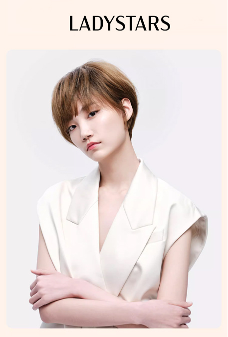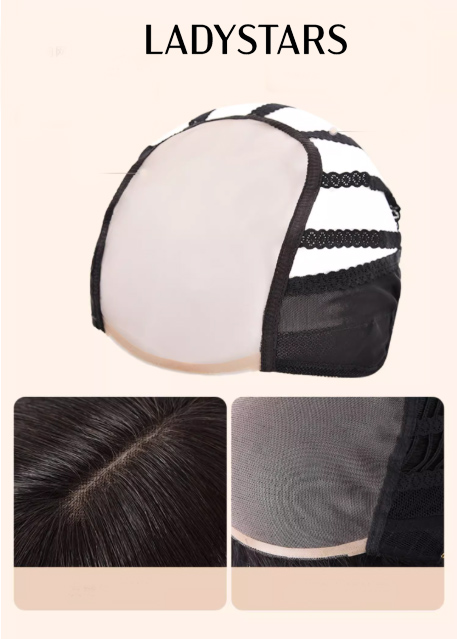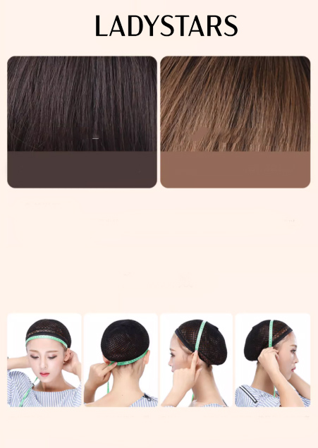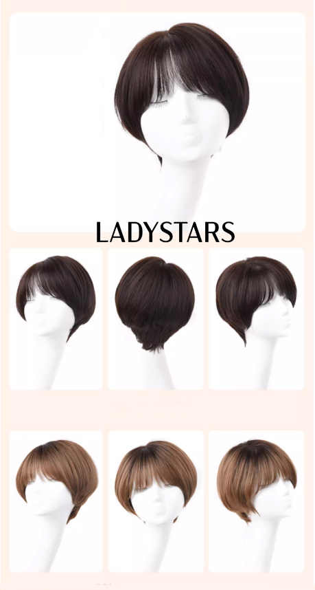 Tóc giả tém nữ LADYSTARS thời trang nâu sáng, có mái bằng tóc thật