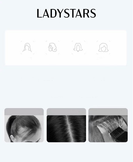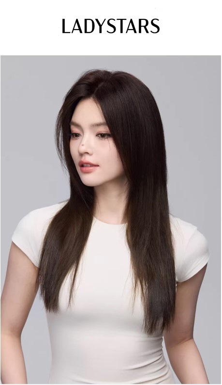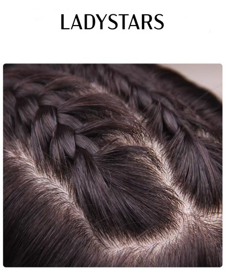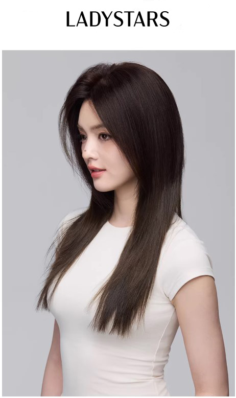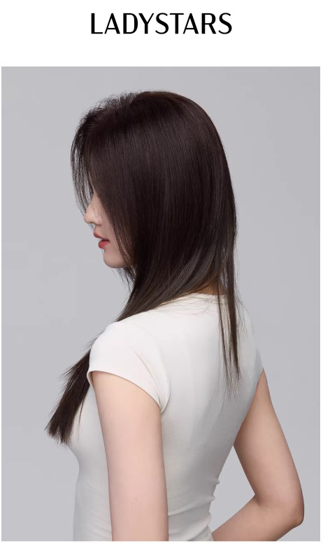 Tóc mái phủ hói LADYSTARS thẳng dài size rộng 13x14cm che phủ cả đầu bằng tóc thật có da đầu